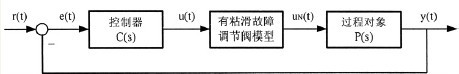 带有粘滞故障的气动调节阀闭环控制框图如图1所示。图1中r(t)、e(t)、u(t)、uN(t)、y(t)分别表示给定输入、跟踪误差、控制器输出、调节阀输出、系统输出。其输入与输出关系如图2所示。