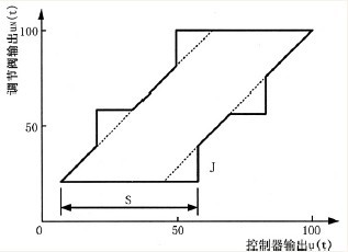 对气动调节阀粘滞特性的建模可以分为3类,分别是物理模型、单参数模型和双参数模型。其中单参数模型和双参数模型是数据驱动模型。物理模型的缺点是模型中存在多个未知且难辨识的参数,在实际运用中具有很大的困难。而单参数模型并不能准确的描述调节阀的实际特性。为了更好地描述调节阀的粘滑现象,提出一种基于双参数S、J的调节阀粘滞模型,其中S表示调节阀的死区参数加粘滞参数,J表示临界跳变参数。基础上改进了双参数S、J模型。本文中的调节阀模型采用的正是文献6提出的基于双参数S、J的调节阀粘滞特性改进模型。