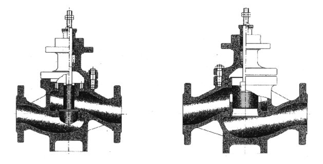 1) 单座阀与套筒阀主要由阀体、阀盖、阀杆、阀芯、套筒(套筒阀)、阀座等零件组成。如图1