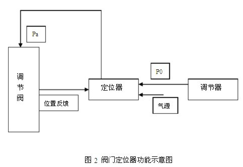 阀门定位器接受调节器的输出信号后,去控制气动执行器;当气动执行器动作时,阀杆的位移又通过机械装置负反馈到阀门定位器,因此定位器和执行器组成了一个闭环回路,图2所示是阀门定位器的功能示意图。图中显示,来自调节器输出的信号p0经定位器比例放大后输出pa,用以控制气动执行机构动作,位置反馈信号外送回至定位器,由此构成一个使阀杆位移与输入压力成比例关系的负反馈系统。